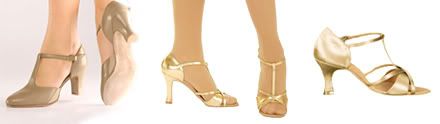 CAPEZIO DANCESPORT SHOES (Latina Style Open Toe) - A favorite for social dancing and the studio among veteran Salsera's. The open toe straps are sexy in black, bronze, satin, and my personal favorite, gold. These shoes come in 3" and 2.5" Latina heels and have a fully flexible forepart for ease of movement. Listed at Capezio for $105.00 but my girlfriend brought hers for $85.00 at onstagedancewear.com